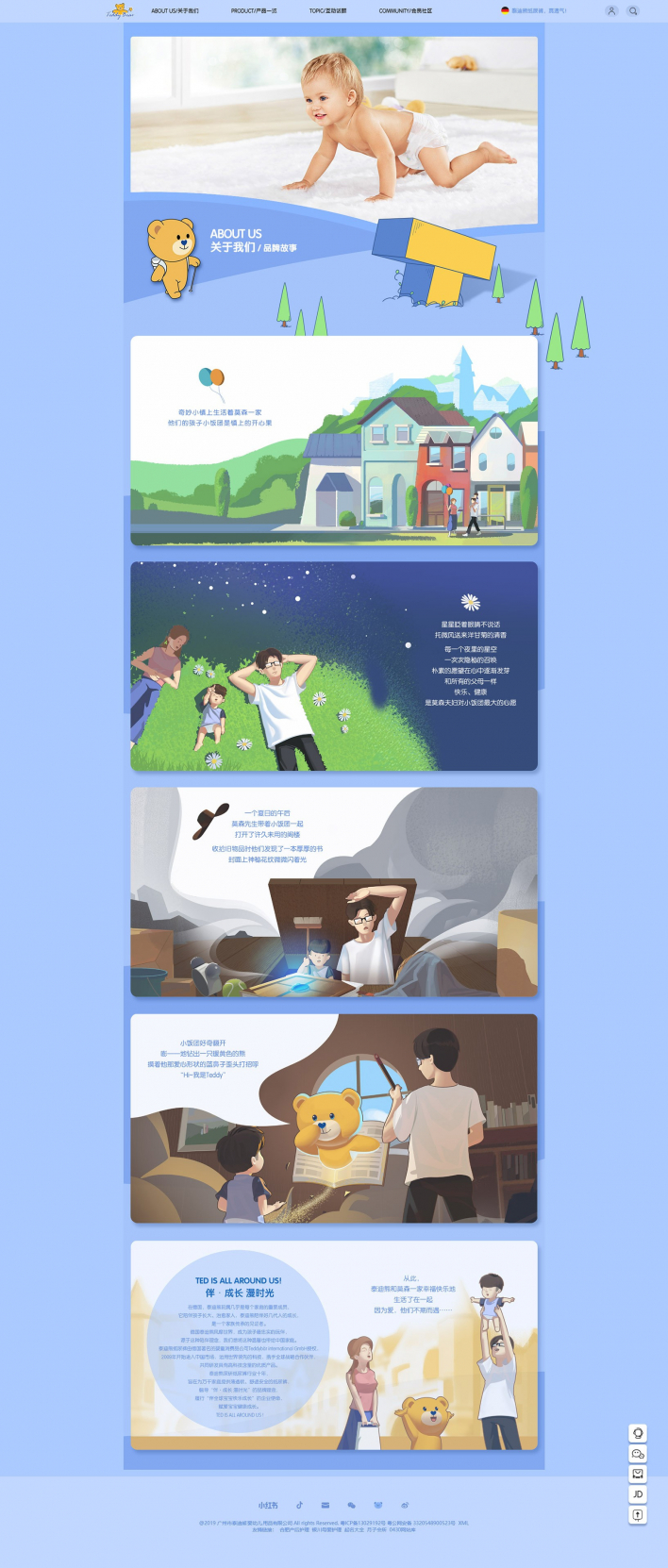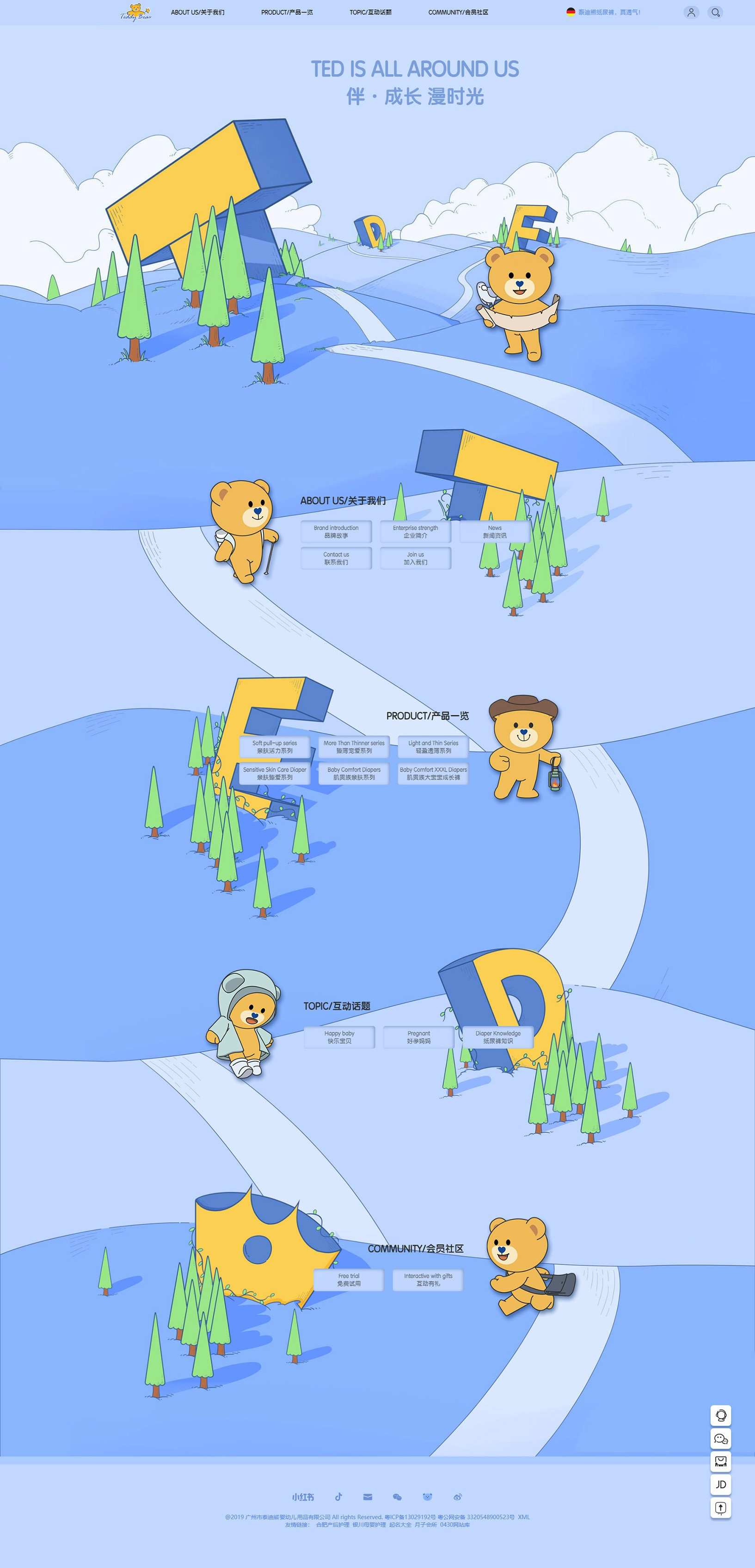 泰迪熊深研紙尿褲行業(yè)十年,旨在為萬千家庭提供薄透軟、舒適安全的紙尿褲,倡導(dǎo)“伴·成長漫時(shí)光”的品牌理念,履行“伴全球?qū)殞毧鞓烦砷L”的企業(yè)使命,賦愛寶寶健康成長。