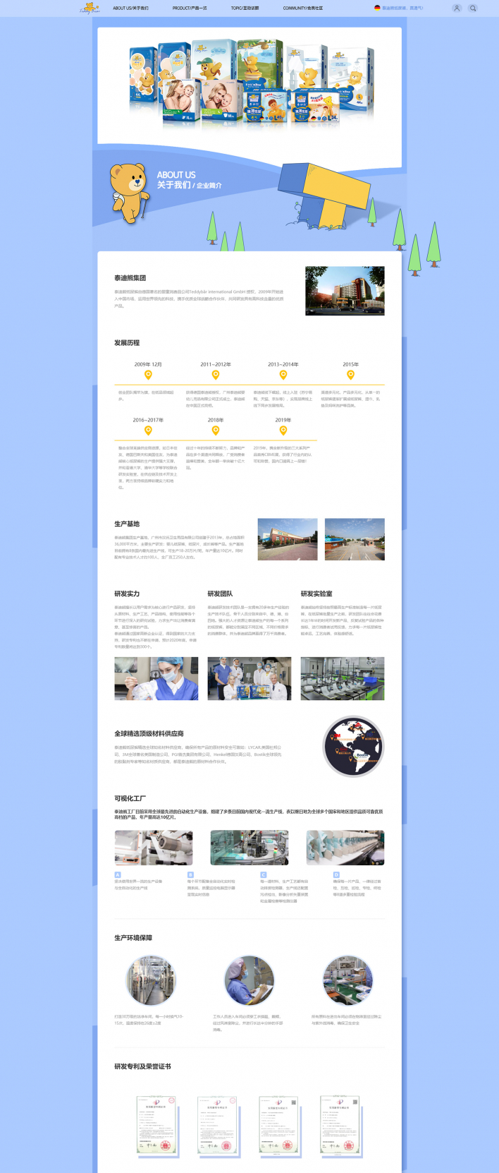 泰迪熊紙尿褲由德國著名的嬰童消費(fèi)品公司Teddybar international GmbH授權(quán),2009年開始進(jìn)入中國市場(chǎng),運(yùn)用世界領(lǐng)先的科技,攜手全球戰(zhàn)略合作伙伴,共同研發(fā)具有高科技含量的優(yōu)質(zhì)產(chǎn)品。