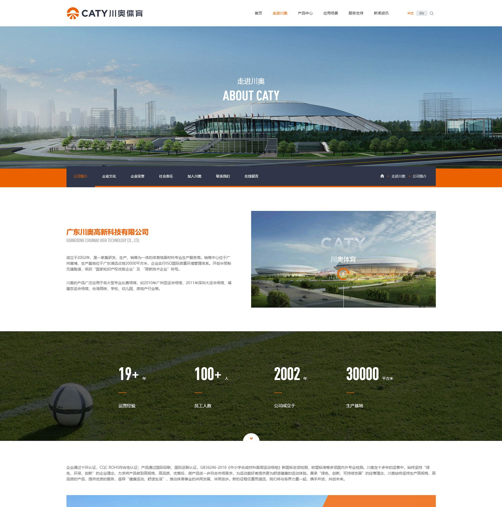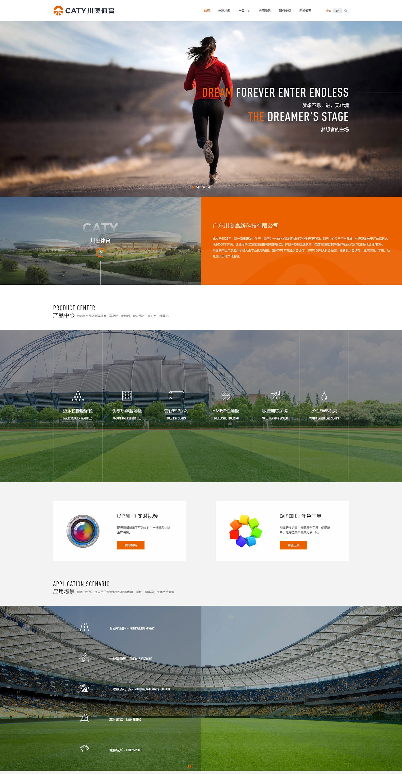 成立于2002年,是一家集研發、生產、銷售為一體的體育地面材料專業生產服務商。銷售中心位于廣州黃埔,生產基地位于廣東清遠占地30000平方米,企業實行ISO國際質量環境管理體系。開創半預制無縫跑道,榮獲“國家知識產權優勢企業”及 “高新技術企業”稱號。