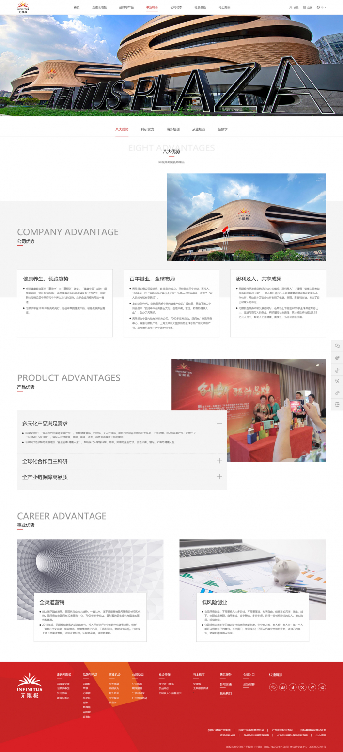 無限極努力打造產品、品牌、核心技術和平臺建設等方面的競爭優勢,擁有新會、營口兩個生產基地,香港無限極廣場、廣州無限極中心、上海無限極大廈和廣州無限極廣場(在建)等物業,在中國內地設有30家分公司、30家服務中心和超過7000家專賣店。