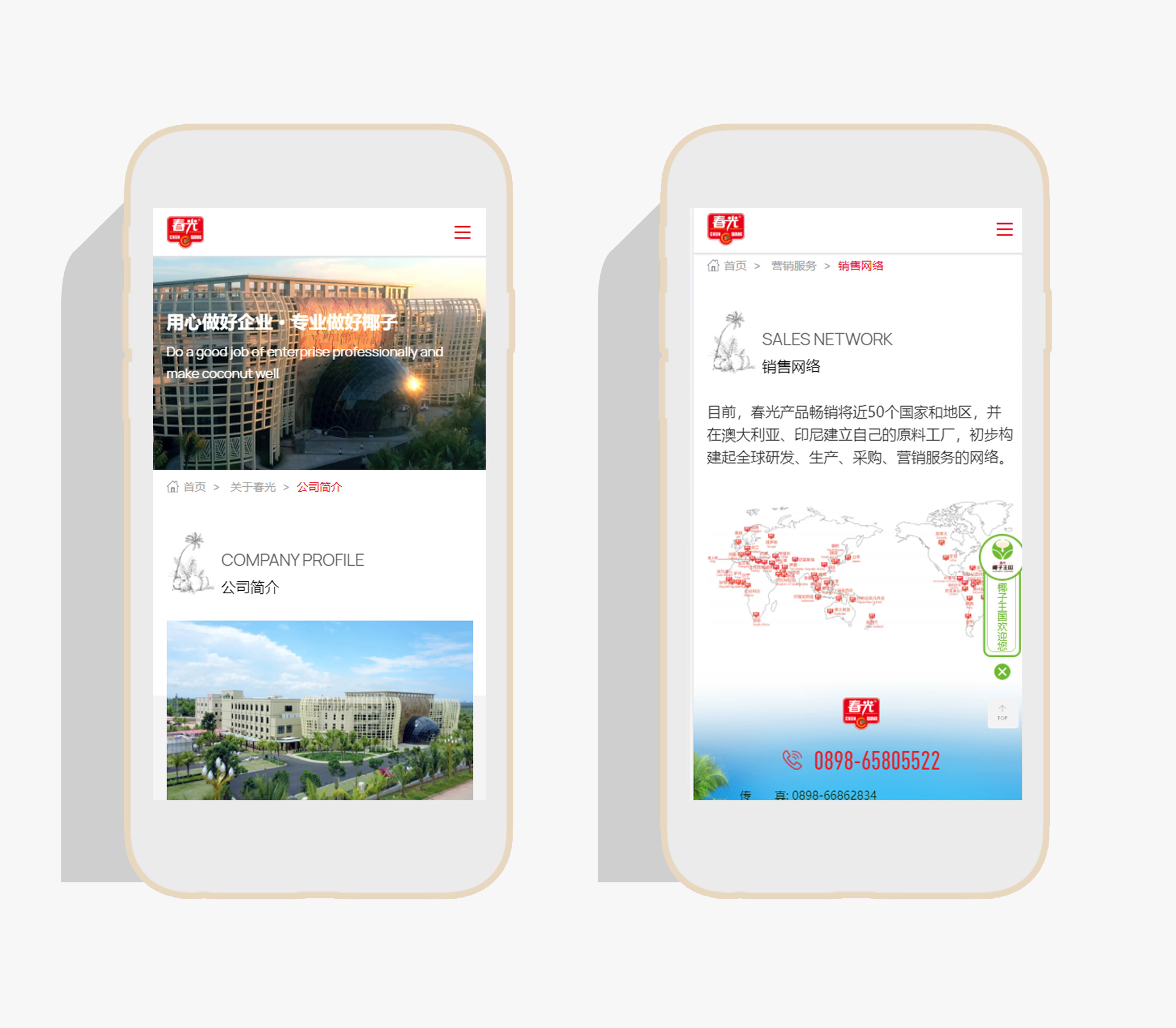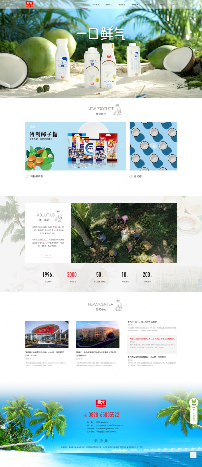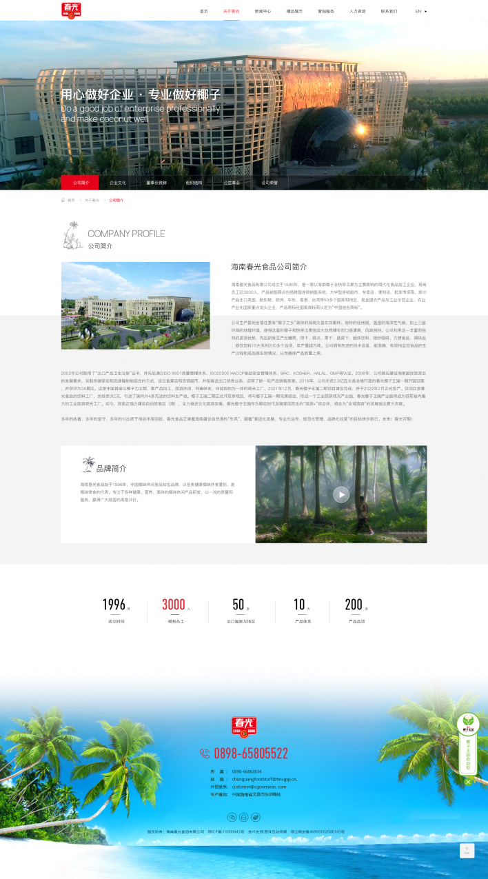 海南春光食品有限公司成立于1996年,是一家以海南椰子及熱帶瓜果為主要原料的現代化食品加工企業,現有員工近3000人,產品銷售網點包括跨國連鎖銷售系統、大中型連鎖超市、專賣店、便利店、批發市場等。部分產品出口美國、新加坡、歐洲、中東、香港、臺灣等50多個國家和地區,是全國農產品加工業示范企業、農業產業化國家重點龍頭企業,產品商標經國家商標局認定為“中國馳名商標”。